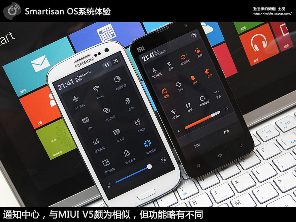 通知中心与小米MIUI V5相比,从视觉上看几乎完全相同,只是切换按钮的位置不同,个人更加喜欢MIUI V5的风格。在开关功能方面,锤子系统暂时不支持自定义,不过几乎常用的功能也都集成了,所以问题不大。