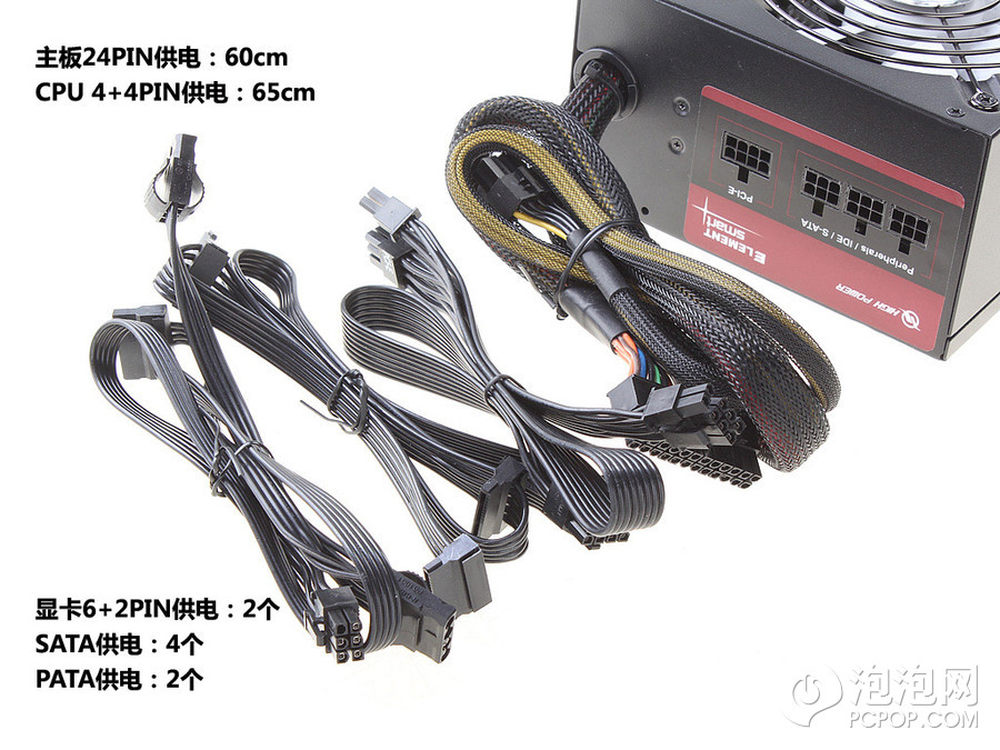 电源供电和线材,专门加长了CPU供电线材,对绝大部分全塔机箱来说都够走背线的。而且提供2个显卡6 2PIN供电,HD7970无压力。模组化线材采用扁线,理线更加方便。10/20