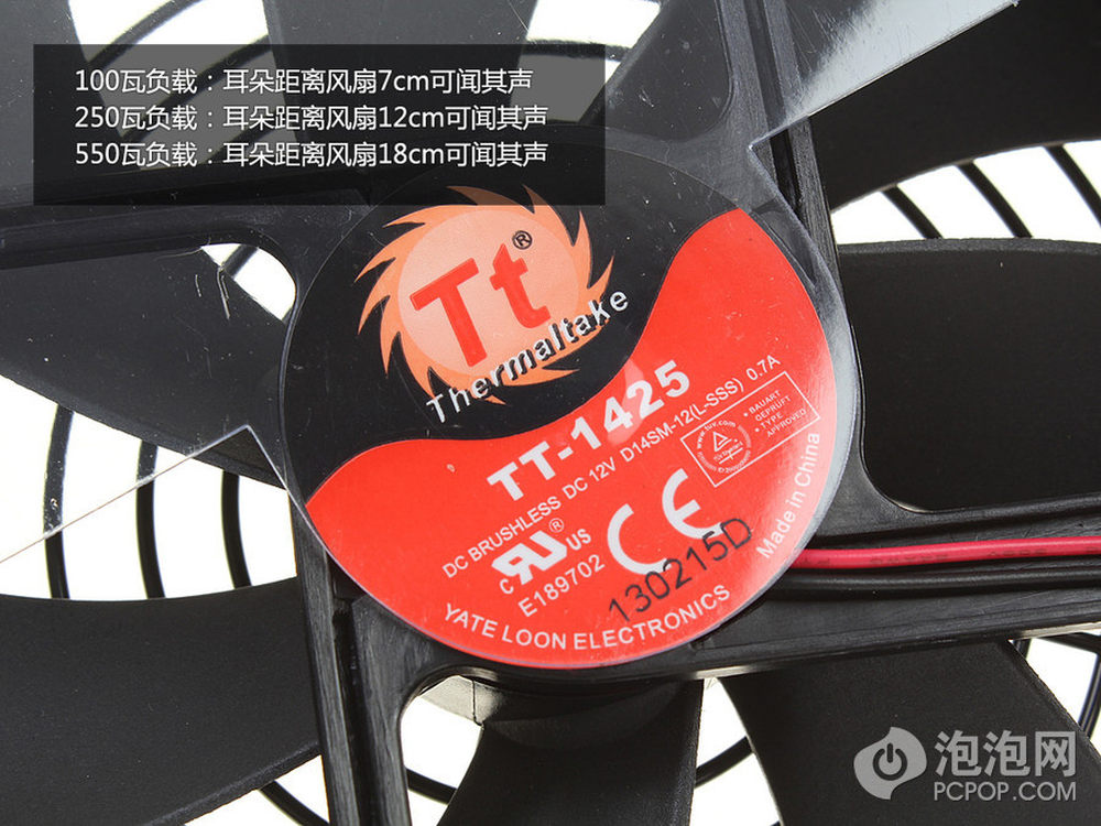 电源风扇采用悦伦的14cm型号,轴承是油封类型的。在250瓦负载前还是比较安静的。17/19