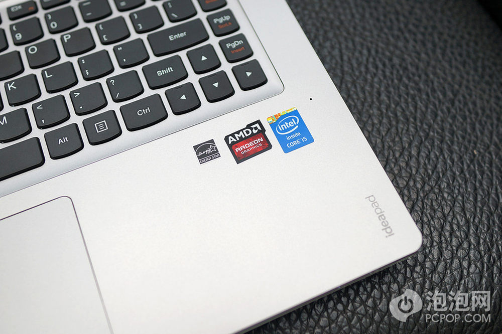 S410机身C面右下角有一个不起眼的麦克收音孔,此外还有ideapad刻字和处理器、独立显卡的标签。12/16