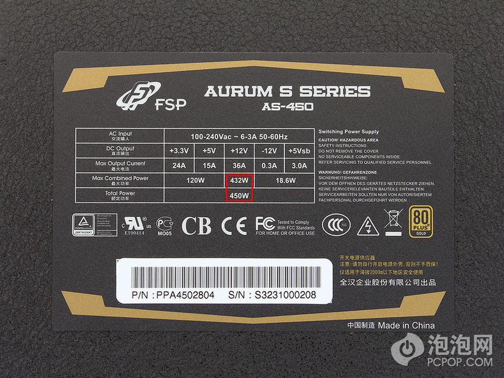 450瓦的额定功率中12V输出能力高达432瓦,所以带很大功耗的单显卡也不成问题。各国安规非常齐全,让人放心。
