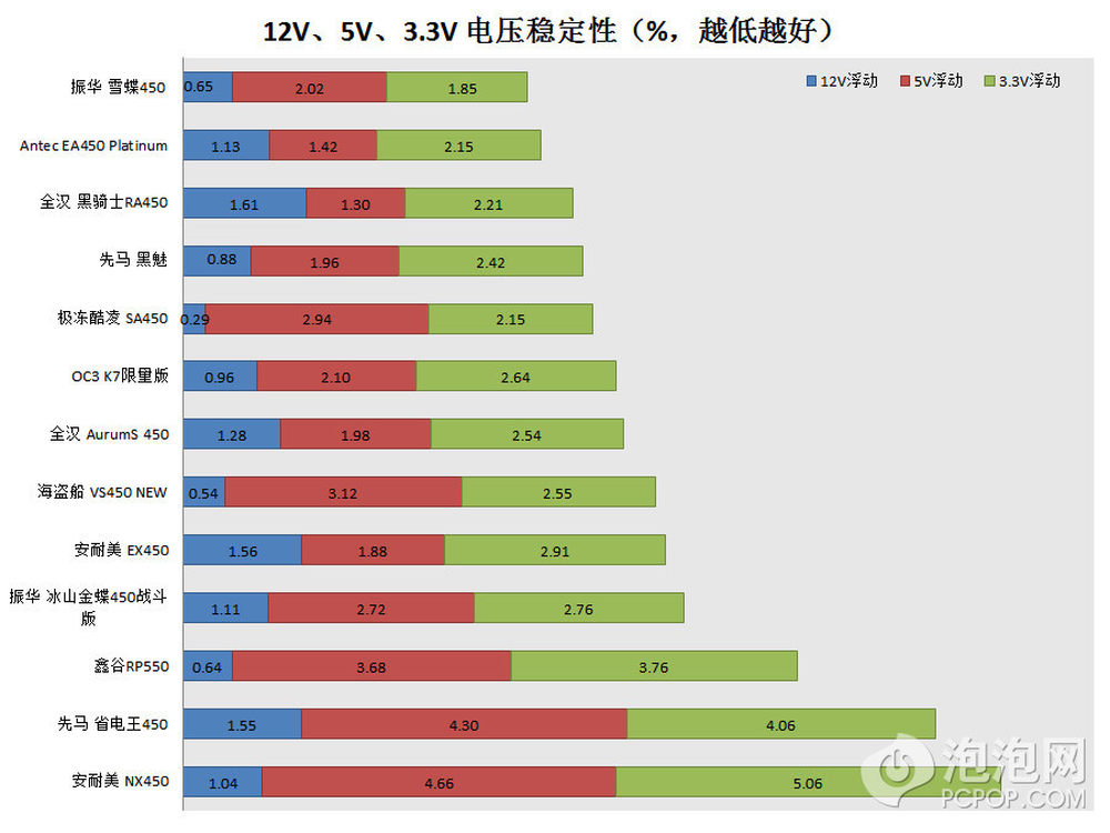 如果对比全汉之前一款功率稍高的Aurum S 550电源看,Aurum S 450的电压浮动值和它大致相当。7/20