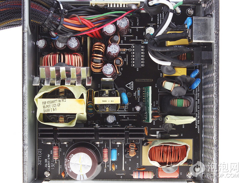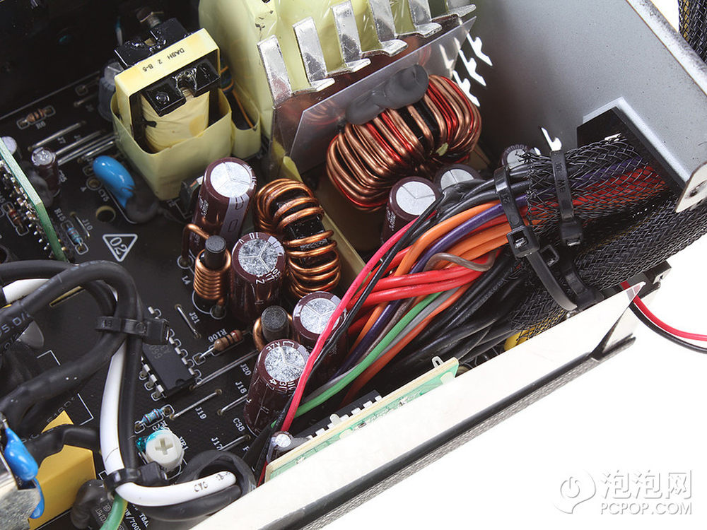 这款电源采用了FSP6600控制的主动式PFC 主动箝位单管正激拓扑 12V与5V的同步整流 3.3V从5V降压的DC-DC结构。这个设计在零售电源市场中从未出现,完全是全汉自行研发的方案甚至包含了控制芯片。这颗电源用料的一大亮点是:全日系电容,这是含金量较高的一个卖点,因为这需要实打实的增加成本才能做到,别无他法。15/20