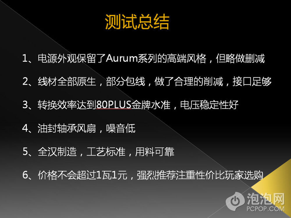 从外观可以隐约看出Aurum原版的影子来,但是也能看出简化了不少。除了24PIN包裹了尼龙网线外其他线材没有包裹。电源最高转换效率超过92%%,这个表现挺不错,无愧于80PLUS金牌认证。Aurum S系列在效率上一点没有缩水。3/20