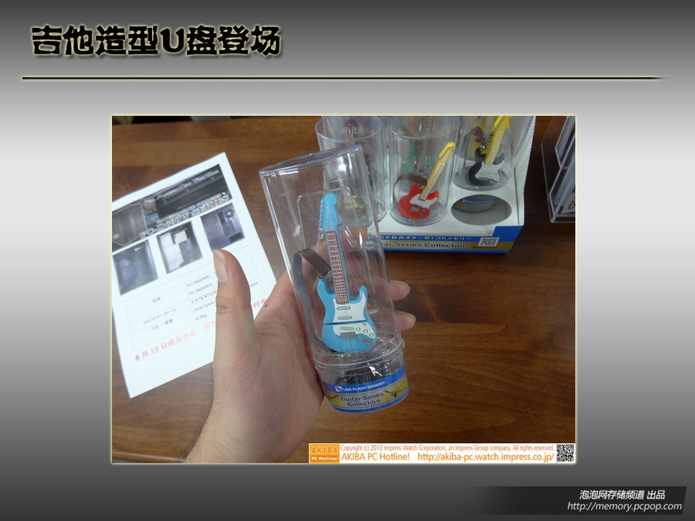 Certi日前在在日本市场推出了一款吉他造型的U盘“Guitar Series Collection”,有12种造型和颜色可供选择,做工十分细致,售价在2980日元,约合人民币189元。