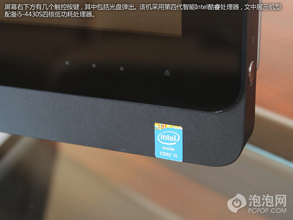 XPS One 2720屏幕右下方有几个触控按键,包括亮度调节、输入源切换、关闭屏幕以及弹出光驱。配置上,该机采用酷睿i5-4430S四核低功耗处理器,高配版可选i7四核。6/20