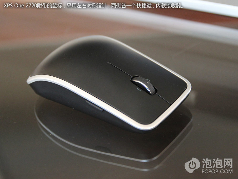 戴尔XPS One 2720附带的鼠标,采用左右对称设计,两侧各提供一个快捷键,内藏无线接收器,同样罗技代工。20/20