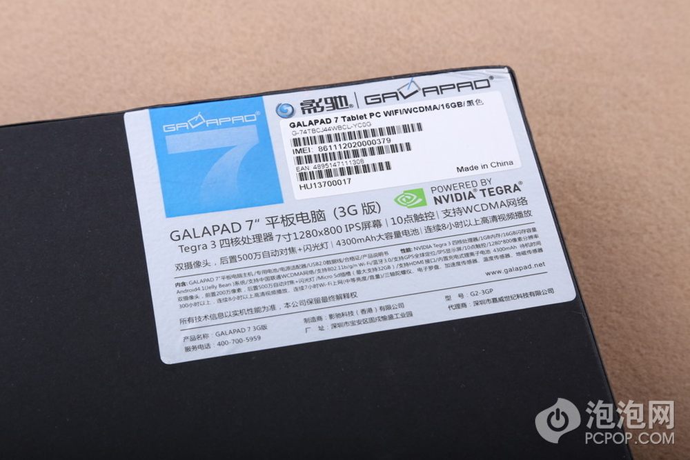 影驰GALAPAD7 3G版包装盒与Wifi风格几乎相同,不过3G版的包