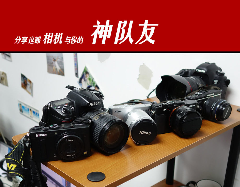 前面都是一张图一台相机,这次怎么这么多相机了?这就是我们摄影群组翻抽屉倒柜子凑出来的全部家当。各位看客别流哈喇子了,这些真的都是各厂商的,和我们自己毫无关系。看着大家手里都握着自己心爱的器材,却发现自己每天接触相机,却没有一台属于自己的相机,哎,心头在滴血有木有……庆幸的是我有一群神队友,可以一起并肩作战。11/11