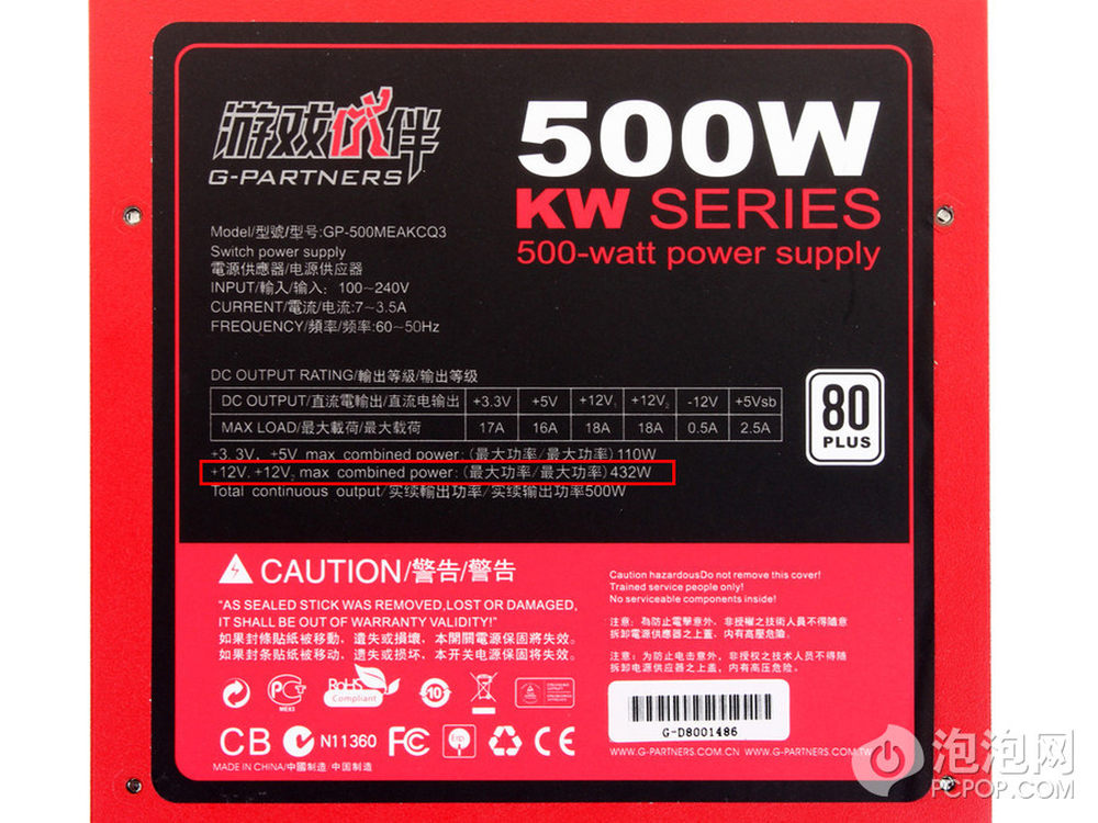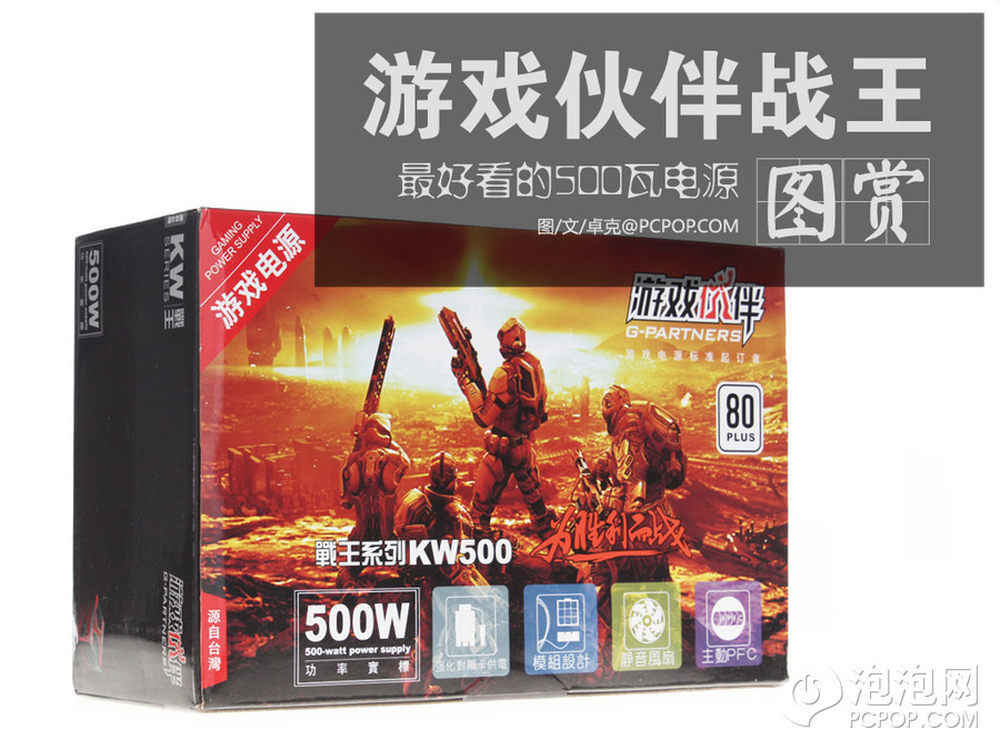 游戏伙伴(G-Partners)这个品牌是2013年才进入大家视线的,今天我们看到的是战王系列KW500电源,也是这个品牌首次在泡泡亮相测试的产品,打开包装就能感觉产品经理在外壳和周边上下足了心思。电源包装上印了80PLUS的Logo,但是这个品牌并没有出现在80PLUS官网上,也许是因为成立时间短尚未更新上吧,让我们还是先着眼在KW500上吧。2/22