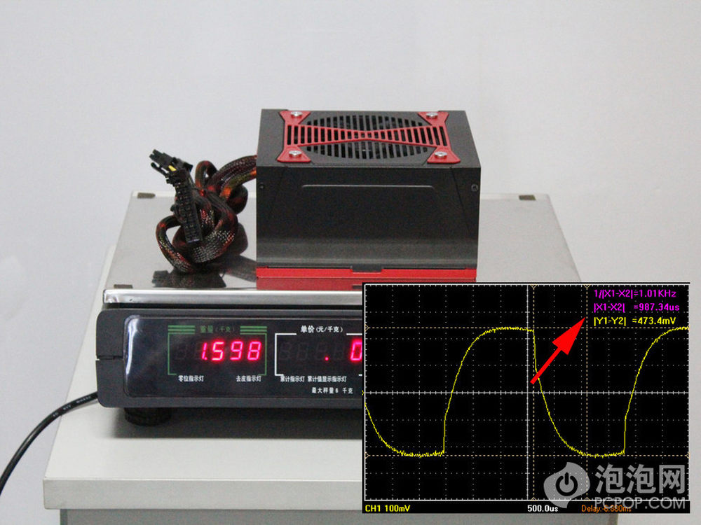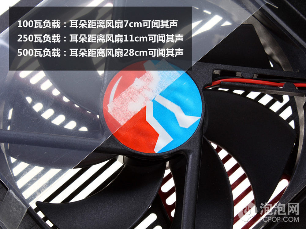 纹波的表现还不错,这一张图可以清楚的看到独特的风扇罩设计,有人认为这种罩子阻碍了风流,实际上影响不大,因为风扇是下吹,靠散热孔把热量吹出的。如果风扇是从这个面把热量吹出的话才有不利影响。8/22