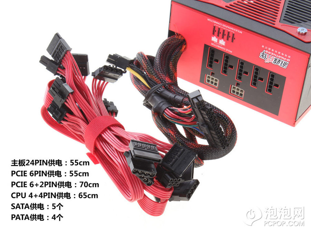 500瓦功率采用了模组化输出线材,其中模组化线材是数据线扁线类型类型,利于理线。给最吃长度的CPU供电留出了65cm,其他接头也足够。线材和模组化接口制作非常精细。13/22