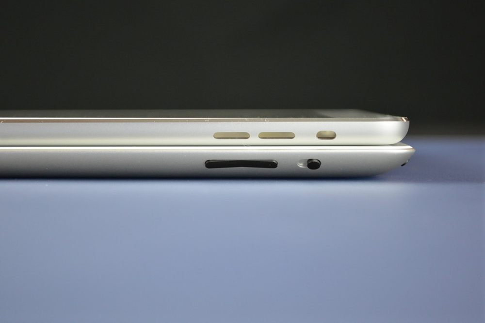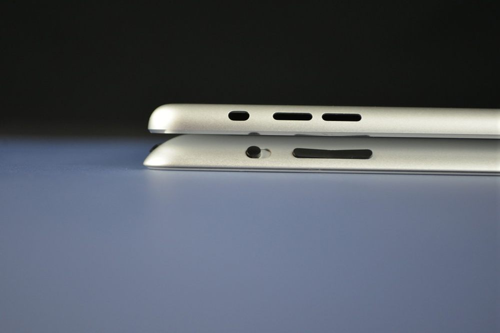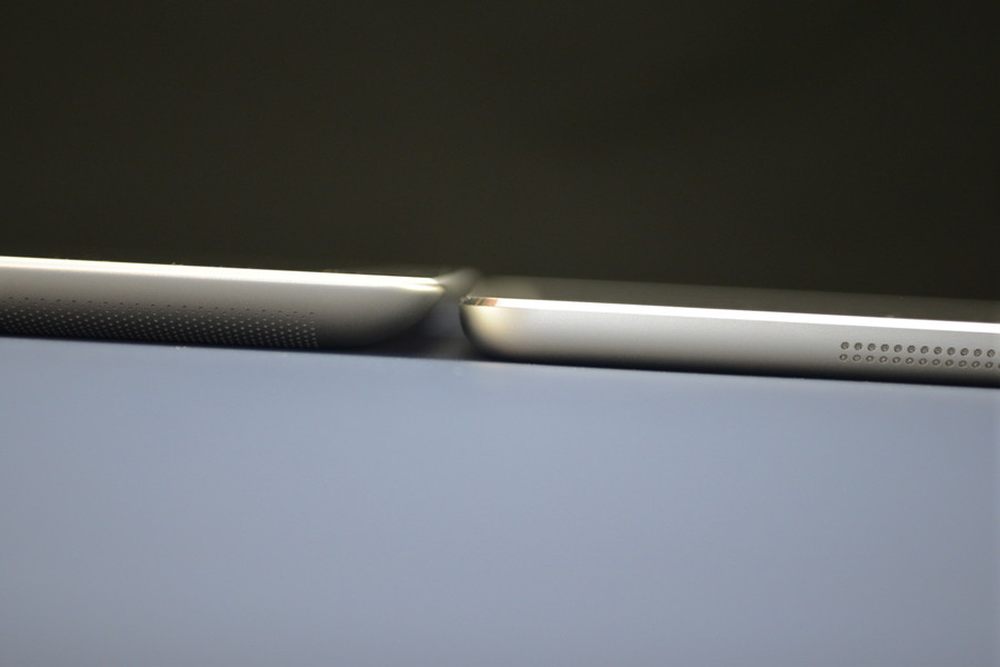 iPad 5相较iPad 4机身厚度有所减少,从微距对比大图来看,大概薄了1-2mm之间,而且新的iP