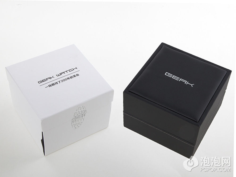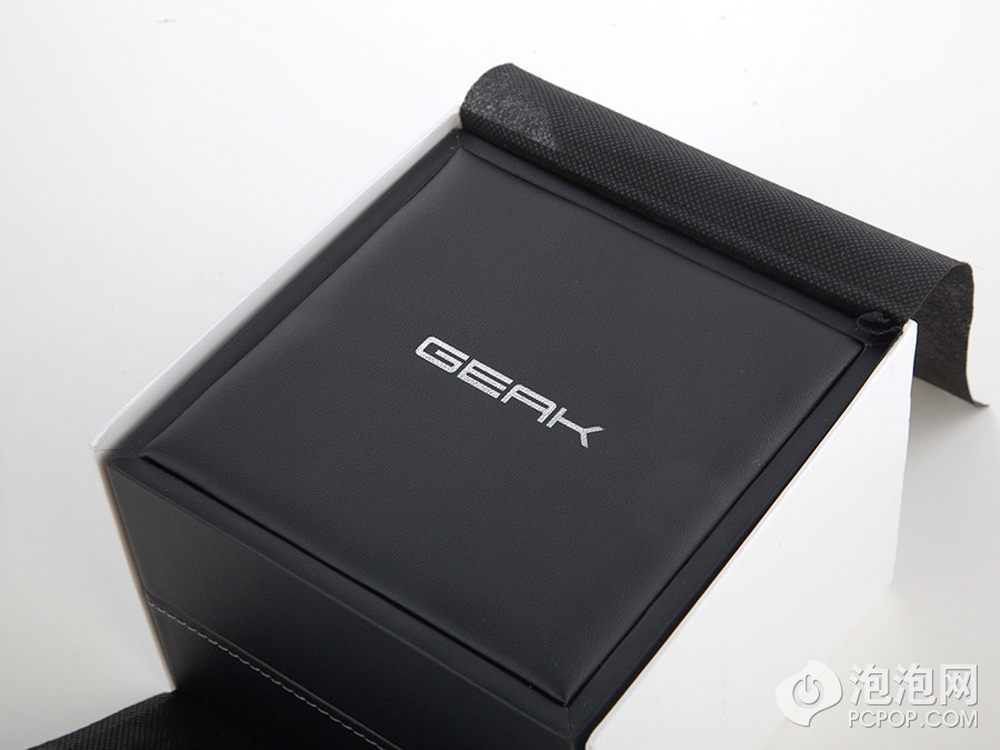 果壳GEAK Watch智能手表采用的是双层包装设计,外面是纸质封装,里面是精致的手表盒。打开包装第一样就能看到GEAK醒目的LOGO,就包装而言相当上档次。5/19