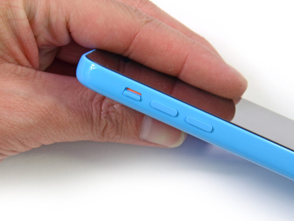 iPhone5c使用的是nano sim卡,在拆机之前,要将sim卡槽取出。