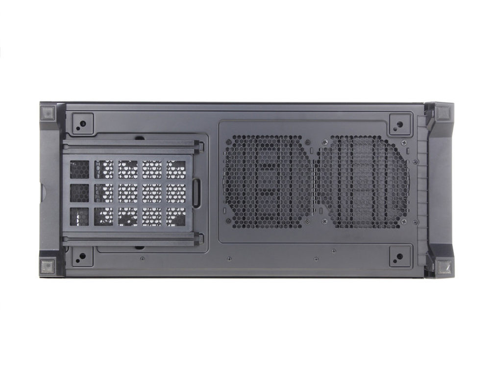 海盗船750D机箱顶盖部分,顶盖上遍布着散热安装孔位,这里可以安装三枚120mm或者三枚140mm风扇。9/32