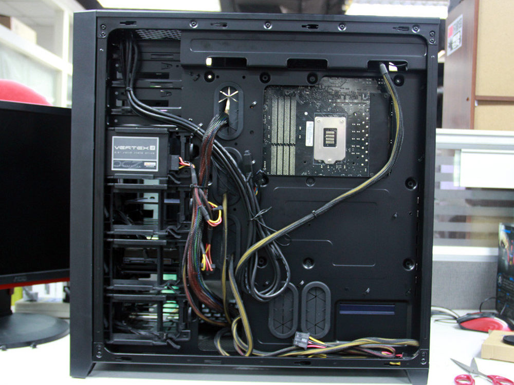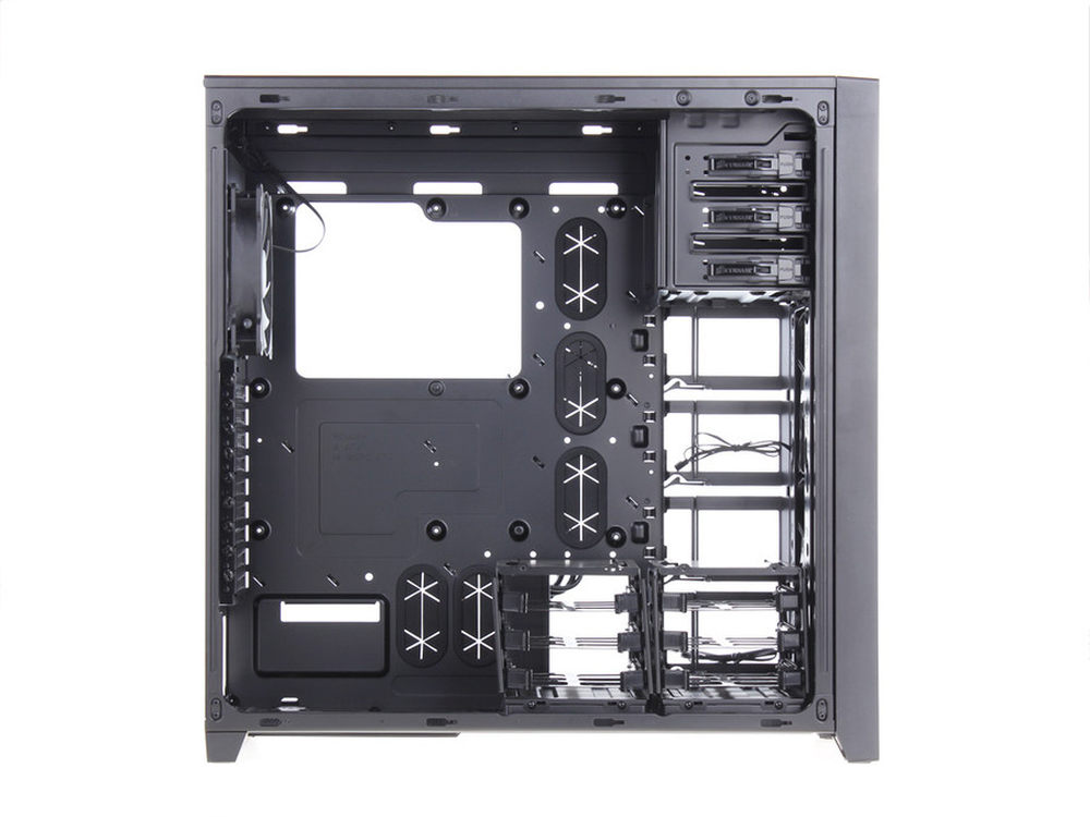 背部走线方面狂海盗船750D主板托盘距离侧板的空间大致为280mm,这样的空间足以应付多卡复杂背部走线所需的空间。24/32