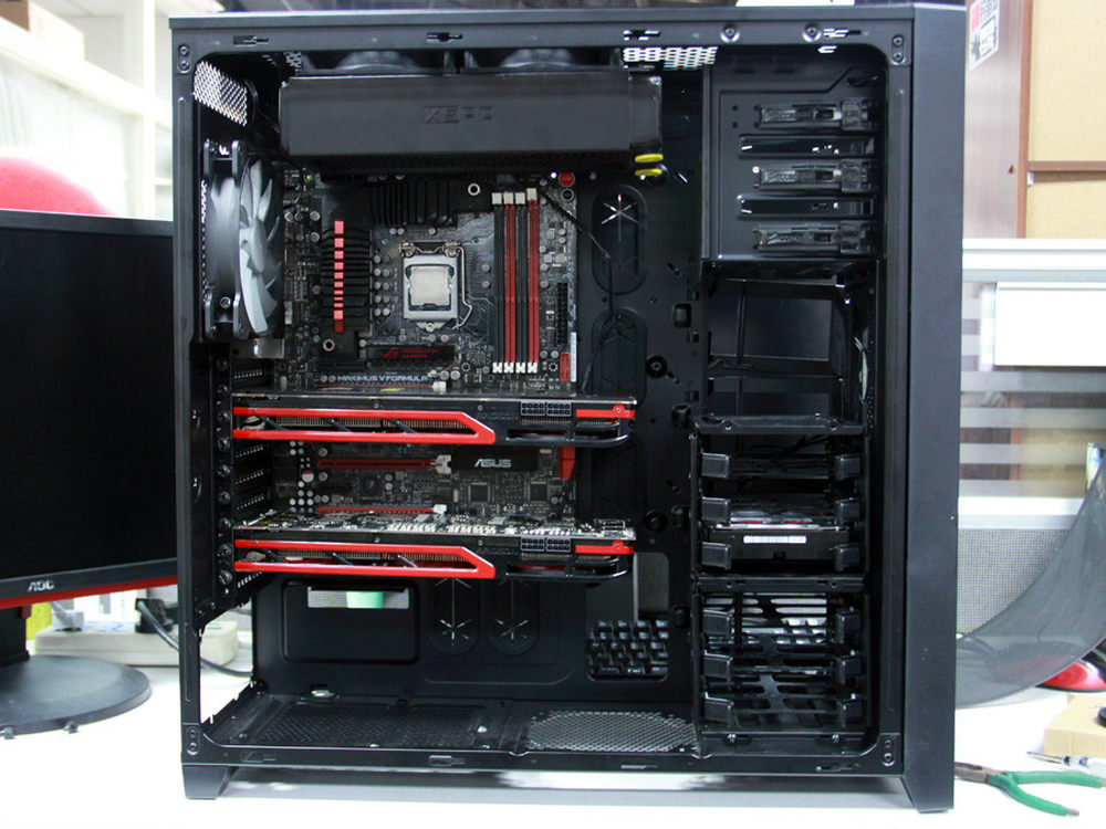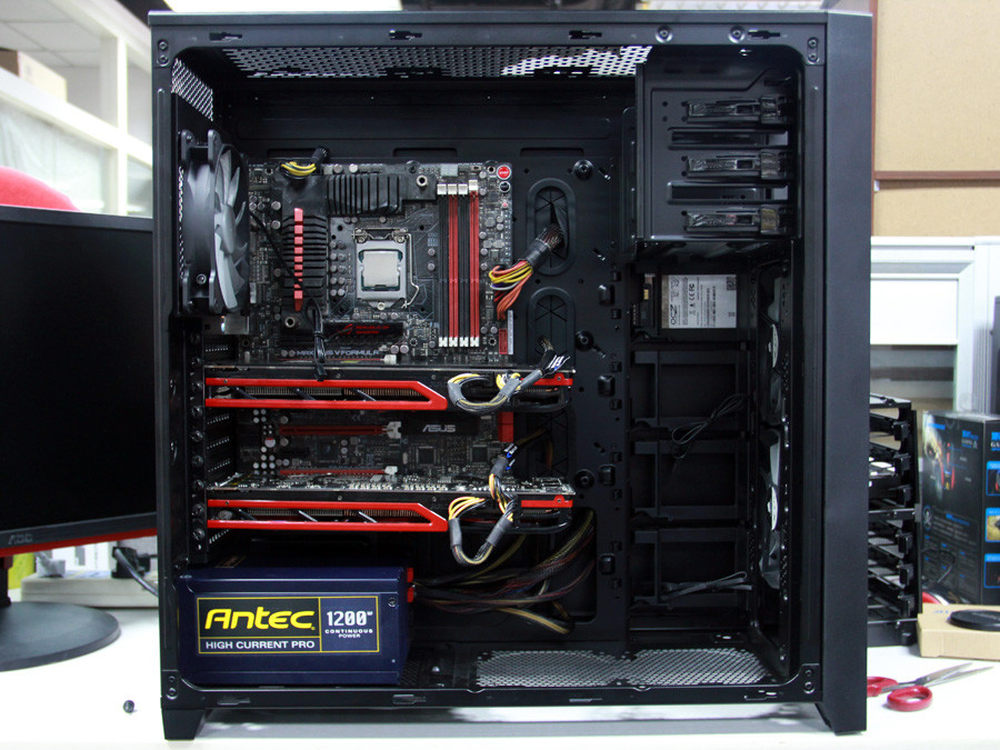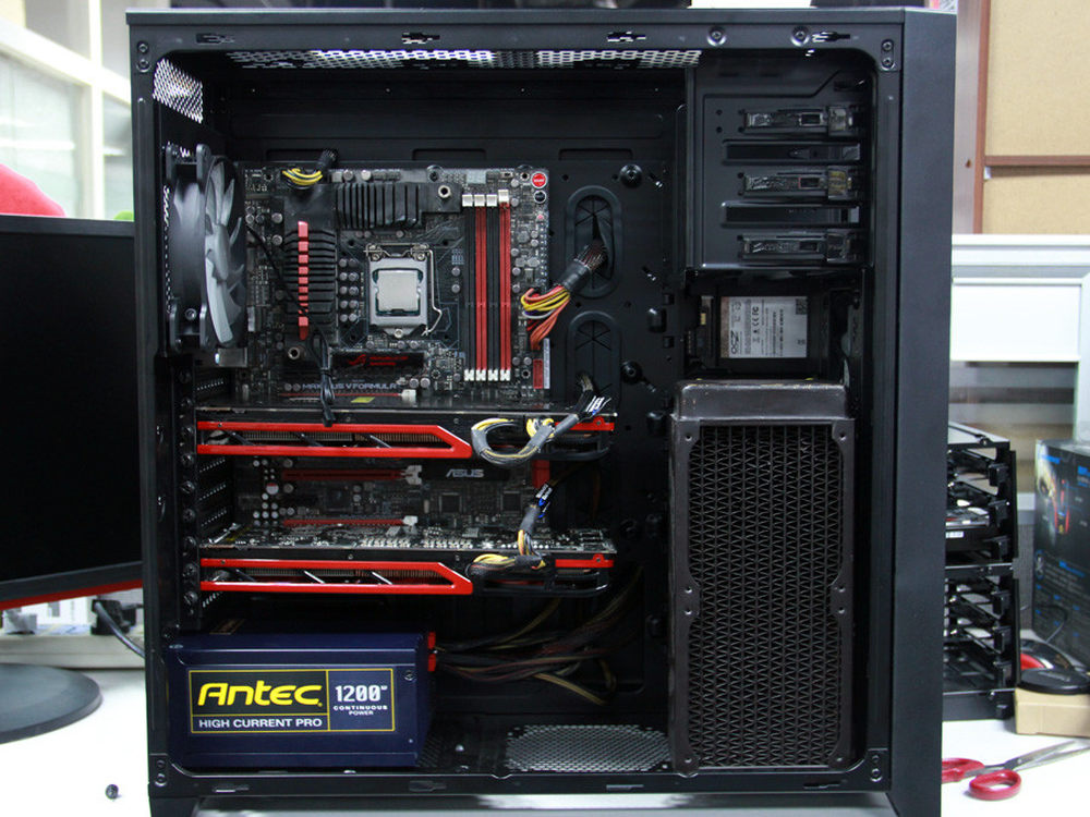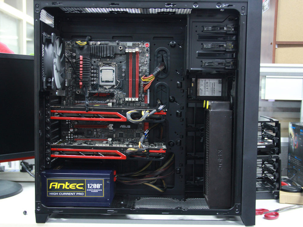装机实测,海盗船750D即使面对双HD7990平台表现的游刃有余,在不拆除硬盘架的情况下还有很多富裕的空间。26/32
