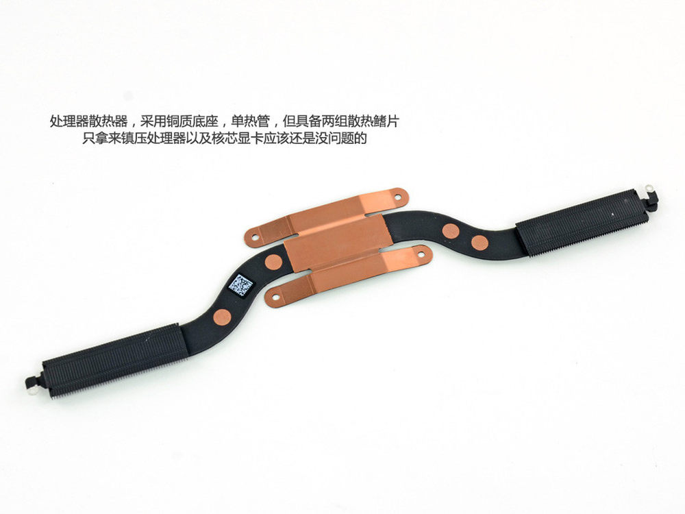 处理器散热器,采用铜质底座,单热管,但具备两组散热鳍片,只拿来镇压处理器以及核芯显卡应该还是没问题的。13/19