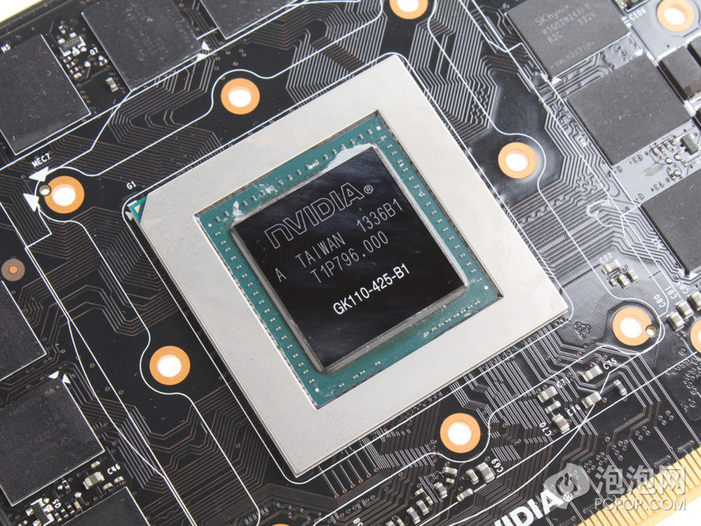 GTX780Ti采用了6 2相供电设计,铁素体电感,全固态电容等豪华用料自然不可或缺,此外,显卡还需要外接的8 6Pin供电。11/13