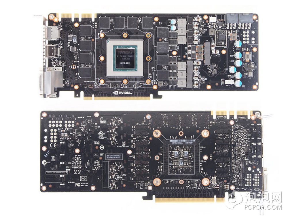 接口方面,具备两个双路DVI,一个DisplayPort和一个HDMI接口,以轻松实现高分辨的三屏NVIDIA Surround或NVIDIA 3D Vision Surround输出。13/13