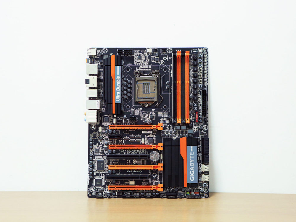 技嘉Z87X-OC主板整体一览,产品使用了OC系列专属的橙黑设计,全尺寸ATX大板确保了足够的扩展空间。6/31