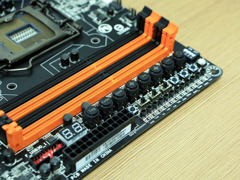 专为超频而提供的快捷超频按钮,而四个DIMM内粗插槽超频可以支持双通道DDR3 3000MHz内存,最大容量为32GB。8/31