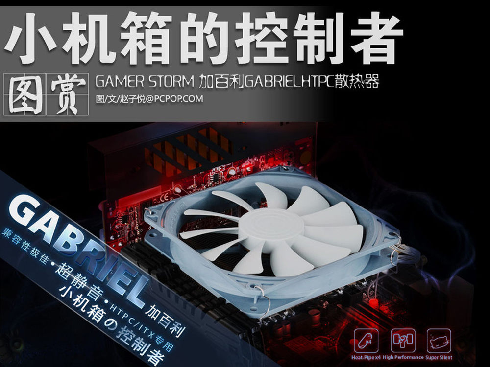 泡泡网散热器频道11月15日 九州风神旗下的高端品牌Gamer Storm已经推出了三款高端台式机散热器产品,凭借优良的设计,已经出色的工艺,赢得了不少玩家的钟爱。就在近日,Gamer Storm推出了一款专为HTPC以及Mini小机箱打造的CPU散热器产品,被命名为Gabriel加百利。下面我们就来看看这款散热器吧。玩家风暴版 CPU散热器 加百利 天猫商城 229元 >> 购买链接