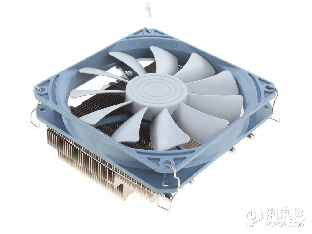 这款散热器的风扇尺寸大小为120X120X20mm,扇叶采用了11片设计,风扇转速900?150至1800?10%% RPM,这样的设计对于增大风量,减小噪音还是有着很重要的作用的,符合了迷你平台的要求。这款散热器还有特别的橡胶线夹设计,这防止了线材的凌乱,保证了机箱内部的整洁,同时也方便了装机过程。玩家风暴版 CPU散热器 加百利 天猫商城 229元 >> 购买链接