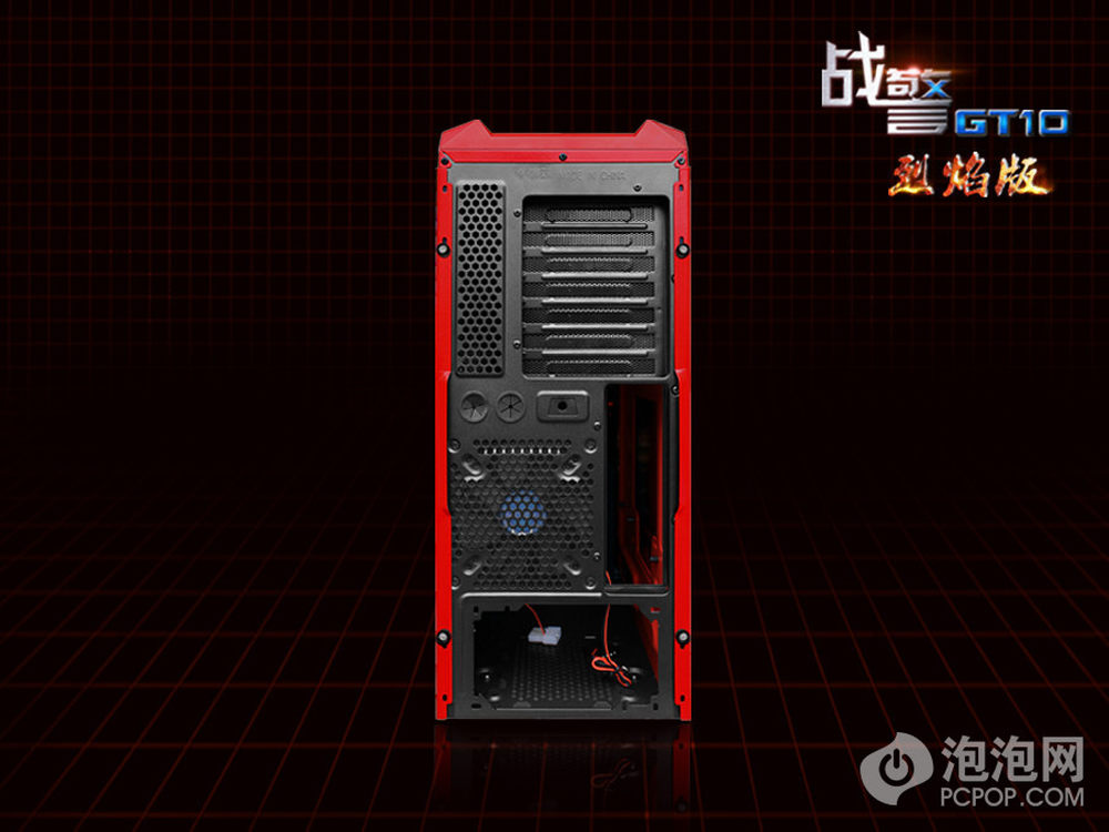 机箱的顶部和前面板都有模具盖,在丰富的通风网孔内就是这个机箱的风扇,这是战警GT10的最大特点。4/9