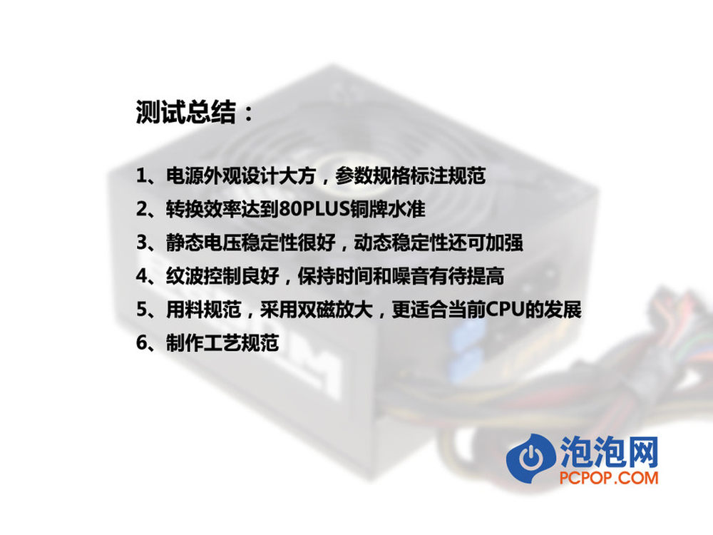 今天我们评测的电源来自利豹,型号为B650M,通过了80PLUS铜牌认证,双管正激结构,双路磁放大方案,相信负载很偏时电压表现会很不错。梳理我们评测过的电源后发现2011年前500瓦是送测最少的功率档,少到只有4个,而2013年500瓦是送测最多的,足有30个,个人感觉这是从研发和消费两个方向上的一致门槛。机箱里长期工作稳定的,ATX尺寸的,500瓦是一个界限,再往上增加功率成本和设计难度都迈到下一个等级,而消费者也渐渐清楚,单显卡功率再高,超频用,额定500瓦电源都是足够的。
