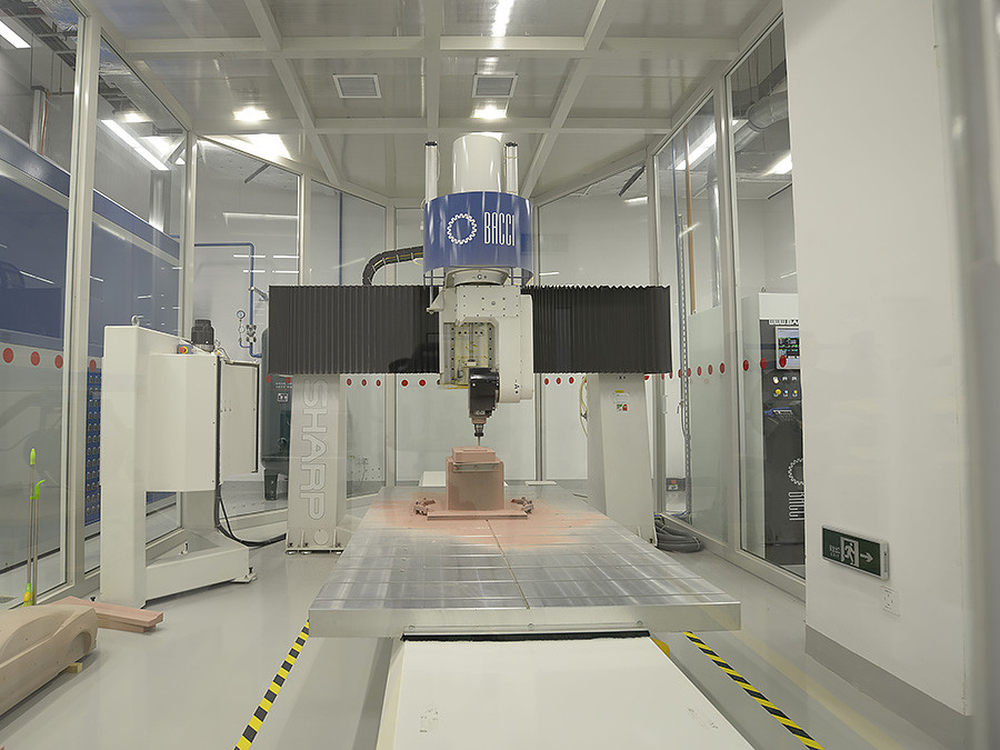 概念车整车集成实验室拥有可实现非常复杂的高精度机器零件即时制造能力的5轴加工机床、可扫描并生成三维数学模型的蓝光扫描仪、可将普通自来水加压到250-400Mpa的水刀和3D打印机等尖端工艺设备。12/21