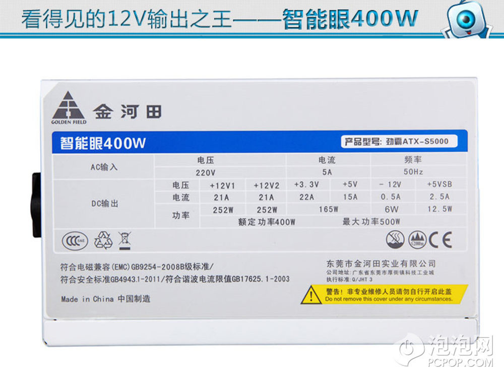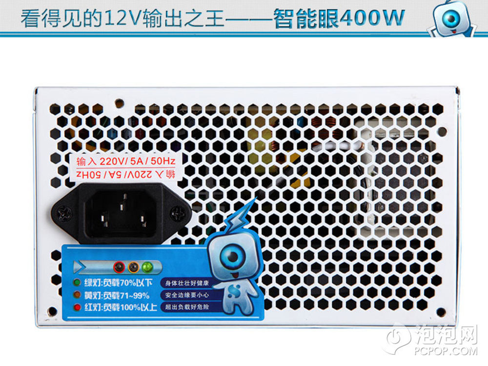 金河田智能眼400W电源更具有独创的智能眼监控功能,可以通过智能控制芯片,以AC输入端的“绿、黄、红”三色指示灯,清晰标示电源以及平台的负载状况。电源的负载功率在70%%或以下时,绿灯亮起而当负载功率达到载71%%~99%%时,黄灯将会亮起,当电源负载超过100%%的时候,随即红灯亮起发出警示。可以说,金河田智能眼系列已经将输出和负载全面实现了可视化。用户就能随时随地地发现平台运行隐患,将不稳定、不安全“扼杀”在萌芽状态。13/15