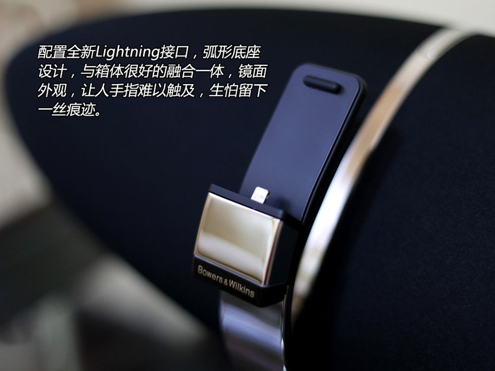 配置全新Lightning接口,弧形底座设计,与箱体很好的融合一体,镜面外观,让人手指难以触及,生怕留下一丝痕迹。7/11