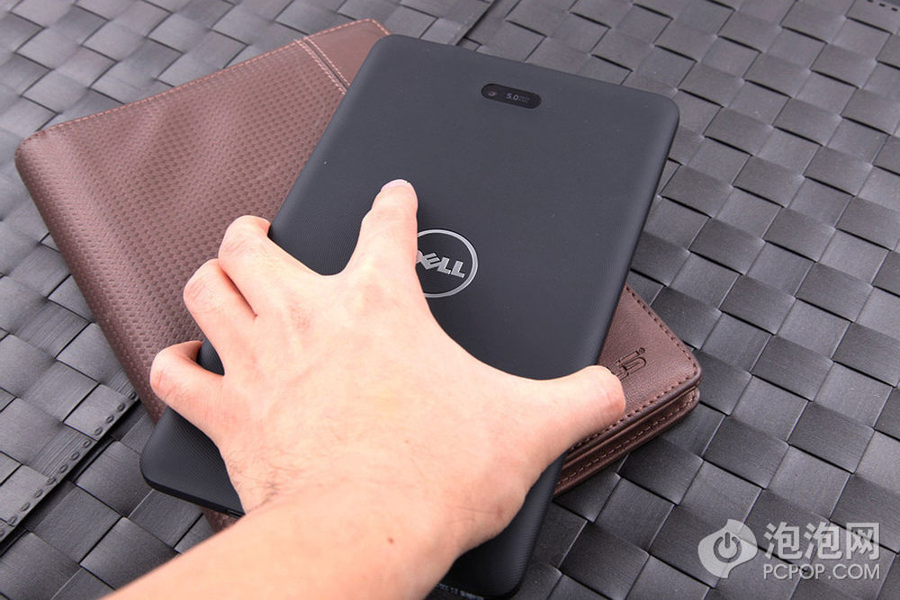 戴尔Venue 8 Pro的背部材料非常好,是软质地的塑料,和传统的ABS硬塑料不同。Venue 8 Pro的背部材料非常有韧性,使劲往下按是可以按下去的,但并非那种软塌塌的感觉,有韧劲,而且背面还有防滑的回旋纹路。6/17