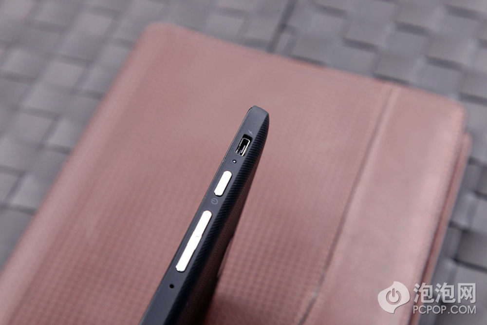 在机身侧面还有一个狭长的micro-SD卡插槽,这个防尘盖采用的材质和背部一直,特别有韧劲的塑料。不过大家肯定都发现了,这个插槽设计的特别长,并且还有一段是空白的,相信这是预留的SIM卡插槽,未来或许我们会看到3G版的Venue 8 Pro。8/17