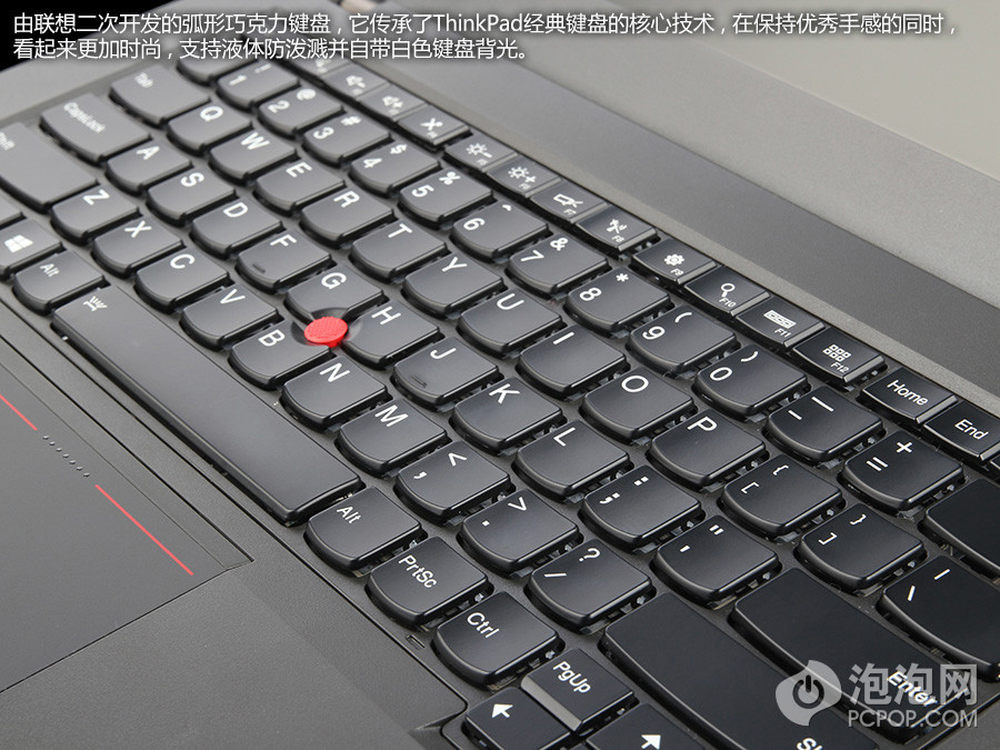 由联想二次开发的弧形巧克力键盘,它传承了ThinkPad经典键盘的核心技术,在保持优秀手感的同时,看起来更加时尚,支持液体防泼溅并自带白色键盘背光。