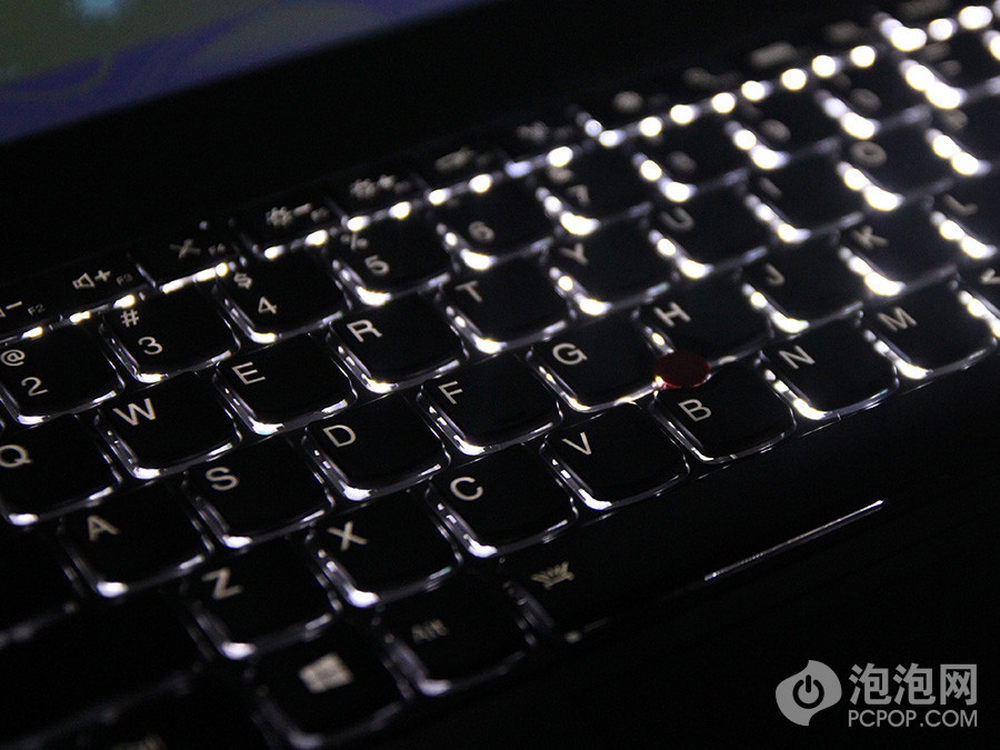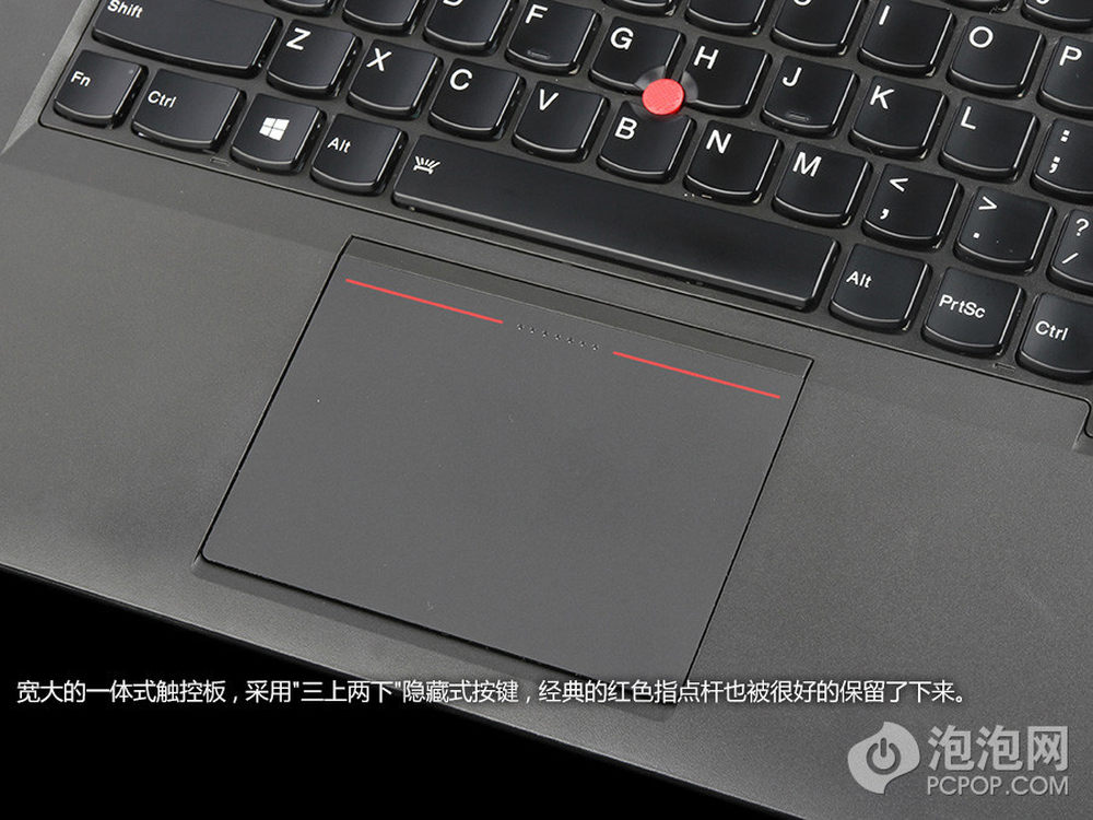 宽大的一体式触控板,采用"三上两下"隐藏式按键,经典的红色指点杆也被很好的保留了下来。