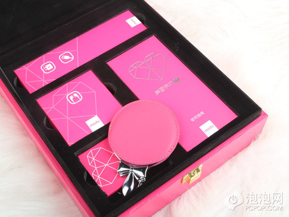 专为女生准备的手机美图1S,它的手机包装盒也十分的特别。说是手机包装盒更像是女生的首饰盒。深粉色的“首饰盒”质感非常不错,摸上去真的很像放高档手势的盒子。3/16