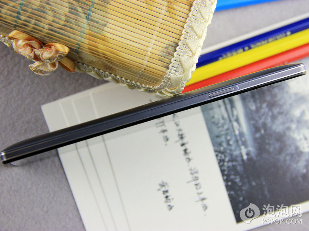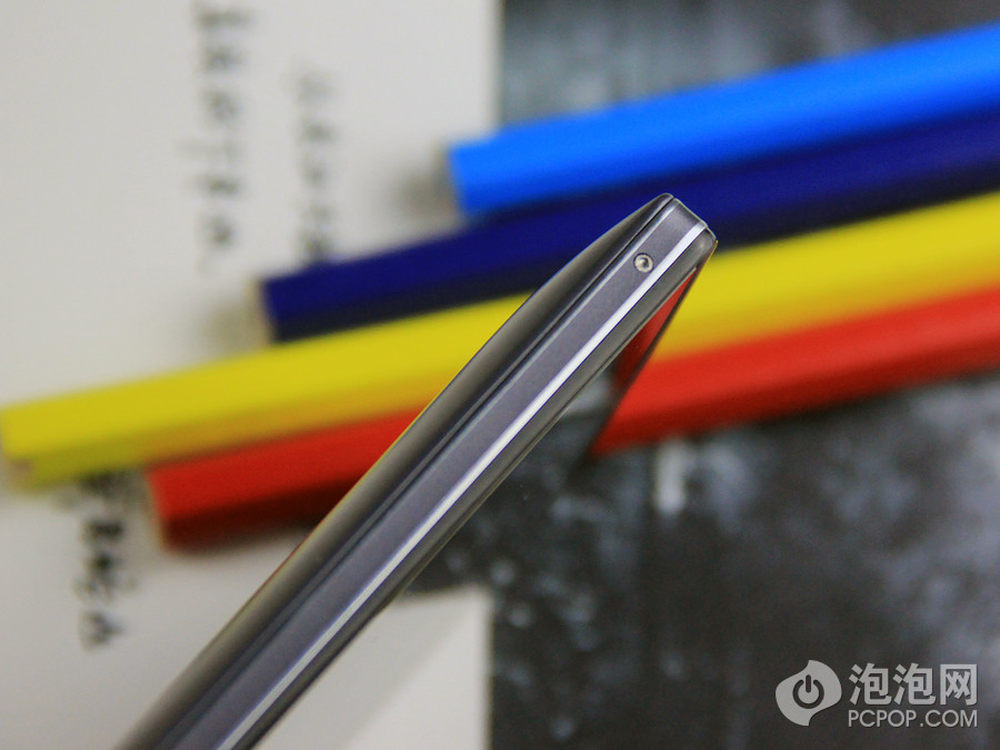 在手机机身右侧靠下位置拥有一个金属小圆点,通过取卡针可以打开手机的后壳,这样的设计让手机机身一体性更强,而且不会影响手机的外观。