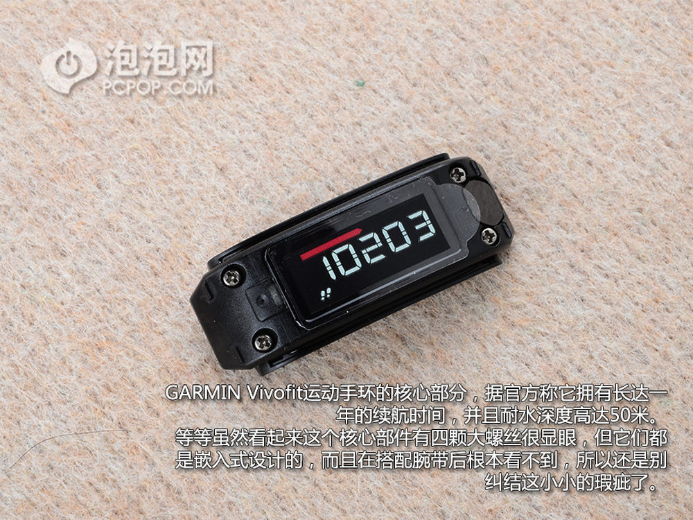 GARMIN Vivofit运动手环的质地手感以及佩戴的舒适度均让我个人非常满意。另外它最大的亮点在于它可以根据佩带者已经完成的目标来设定规划下一个活动的阶段目标,并实时的通过运动步数、距离、卡路里等数值直观反应出来。GARMIN还表示该手环的续航能力要比市面上的其他产品更强,它配有可置换电池,据说可续航一年。它耐水深度为50米,而且还兼容ANT 心率带。